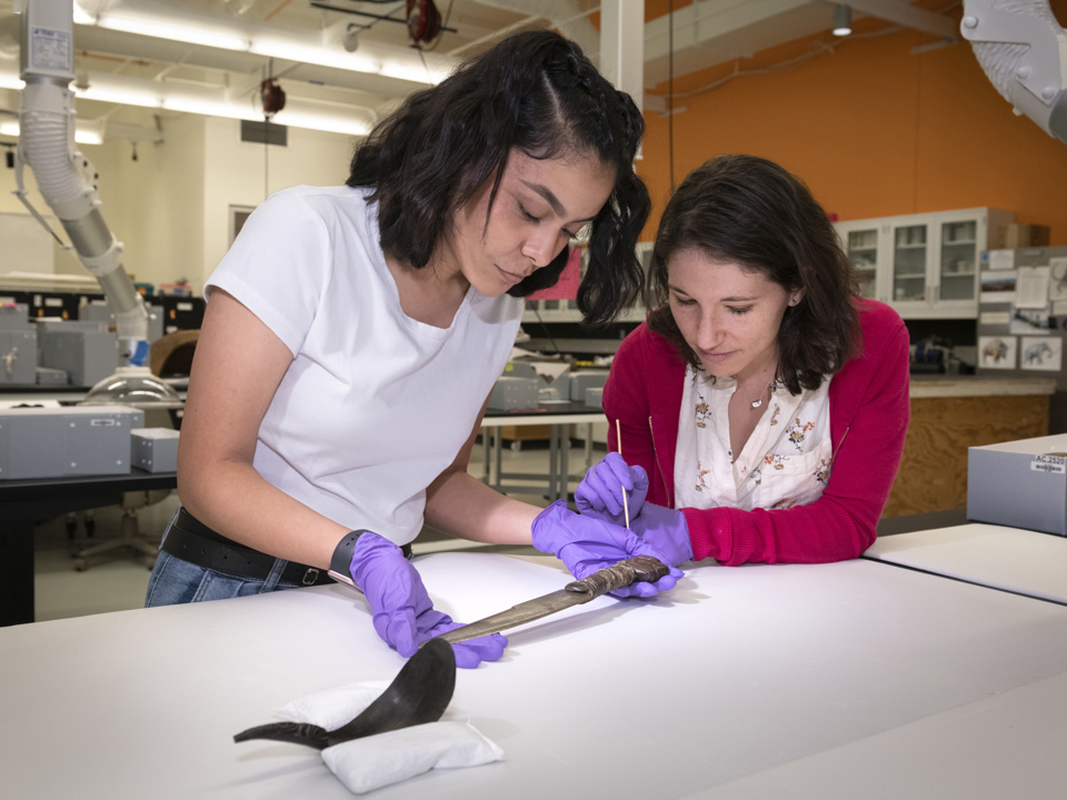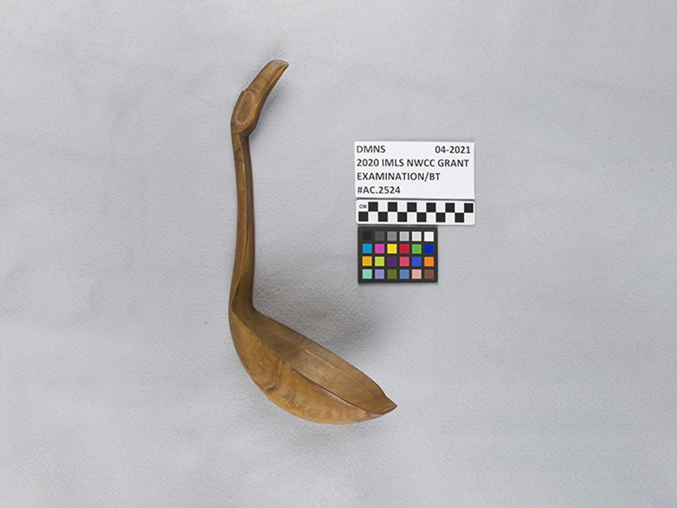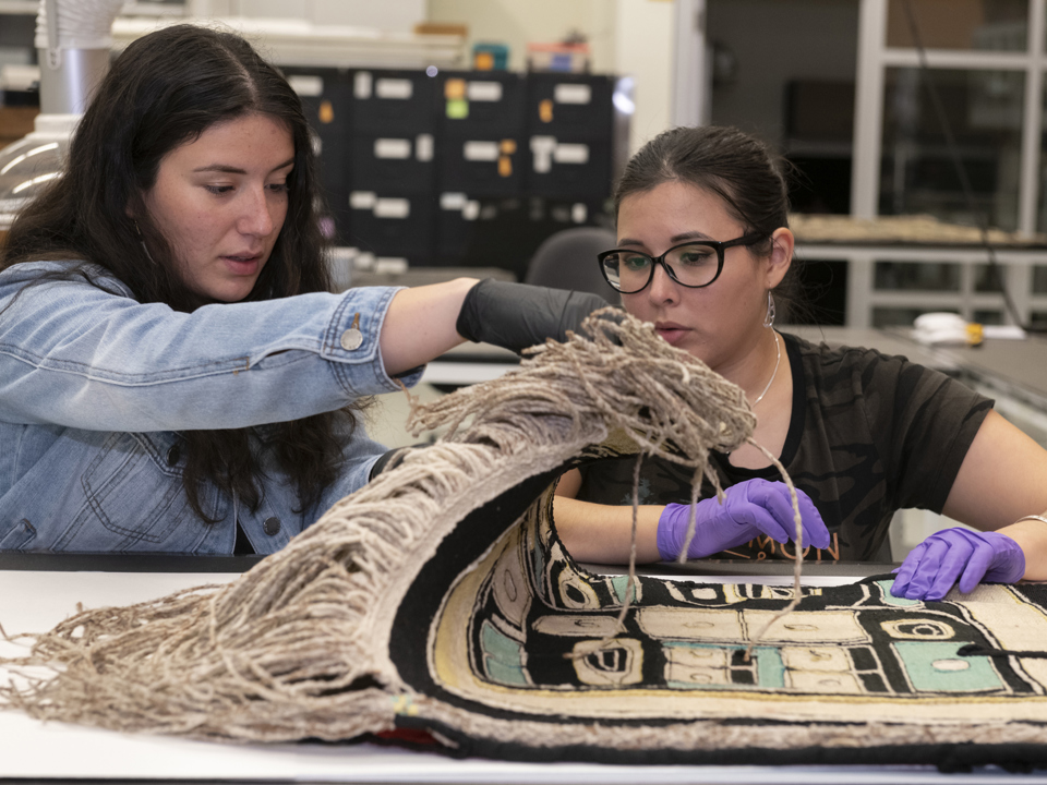During the summer of 2021, Native American Science Intern, Marlo Wylie Brillon, and Teen Science Scholars Brisa Garcia and Shannon Kim performed photographic and written documentation for Northwest Coast pieces. During the summer of 2022, Teen Science Scholars Ellie Van Es and Jacob Ramos performed condition reports as well.